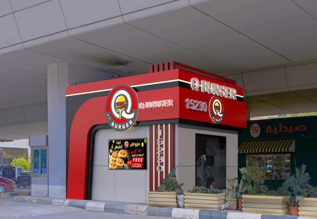 واجهات متناسقة وحديثة تعكس هوية Q Burger التجارية، وتمنح كل فرع مظهرًا جذابًا يعزز تجربة العملاء ويبرز العلامة في السوق.