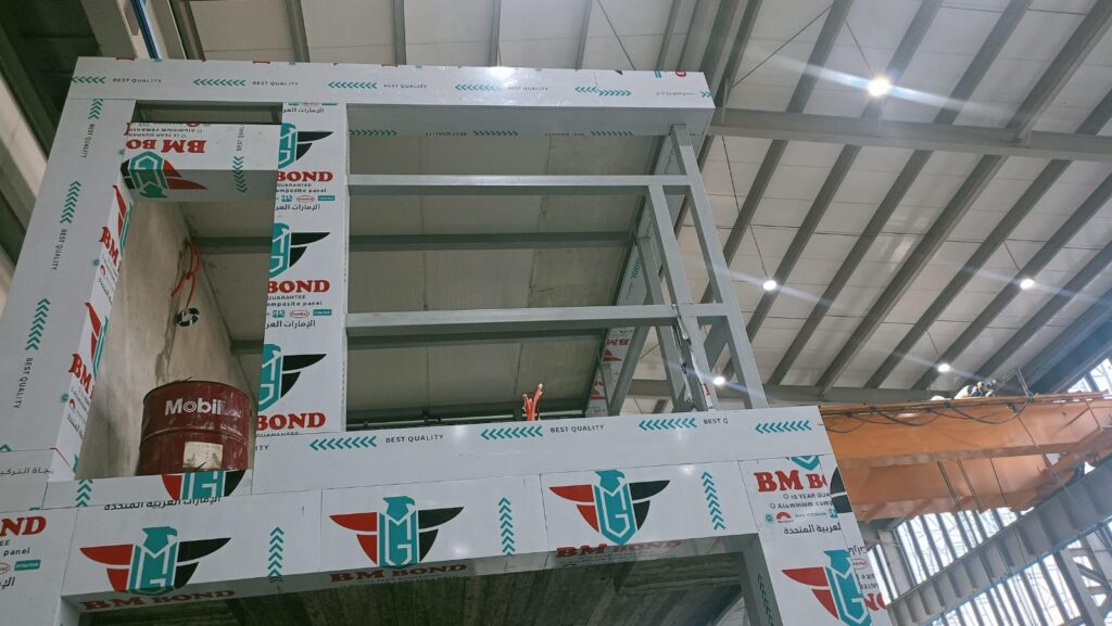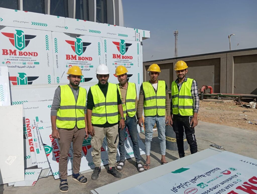 اعتمد الفريق على استخدام ألواح كلادينج معدنية مقاومة للحرارة والعوامل البيئية القاسية، مع نظام تثبيت يضمن الثبات والدقة في التركيب على المدى الطويل.
