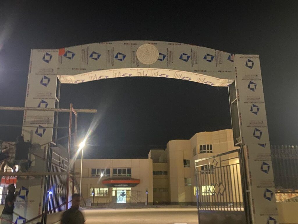 واجهة فنية راقية تمزج بين الأصالة والحداثة، تُبرز المكانة الثقافية لأكاديمية الفنون وتُظهر احترافية شركة الشروق في تنفيذ المشاريع التعليمية ذات الطابع الجمالي والمعماري المميز.