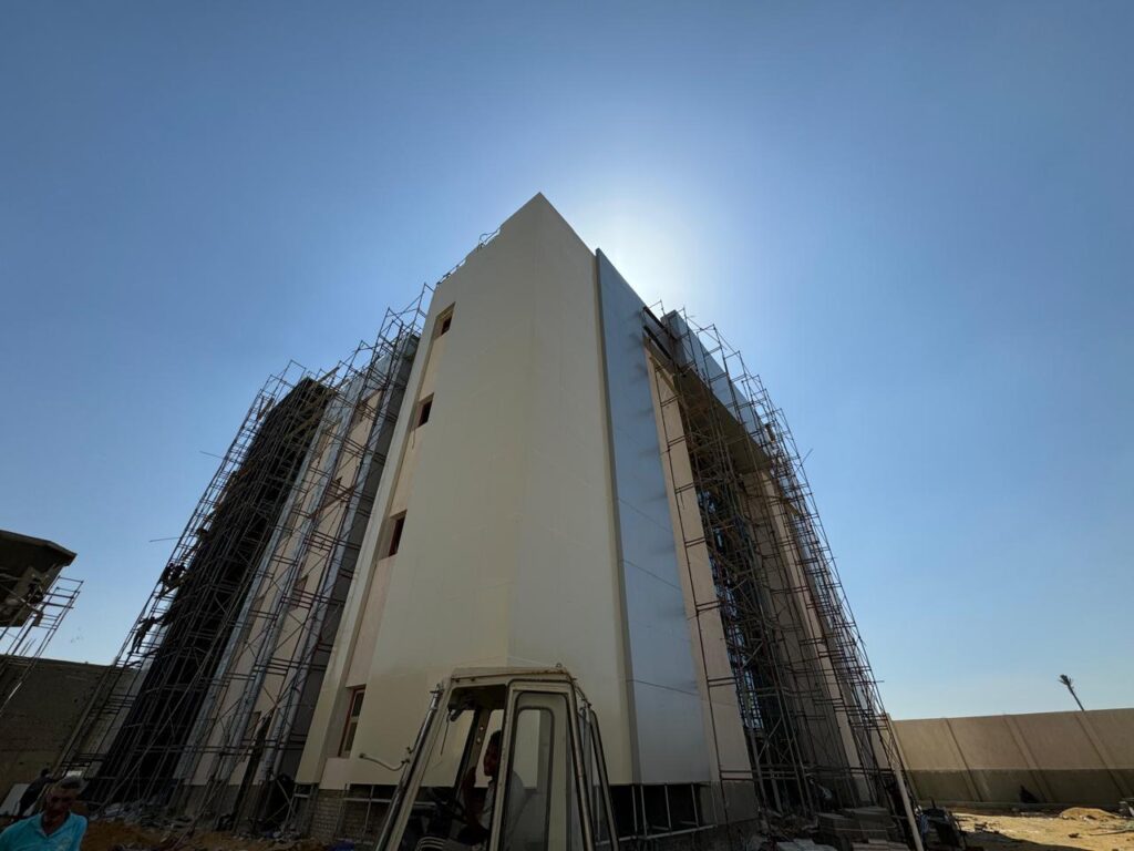 استخدمت الشركة ألواح كلادينج عالية الكفاءة مقاومة للحرارة والعوامل الجوية، بما يضمن استدامة طويلة ومظهرًا راقيًا يليق بأهمية المنشأة.