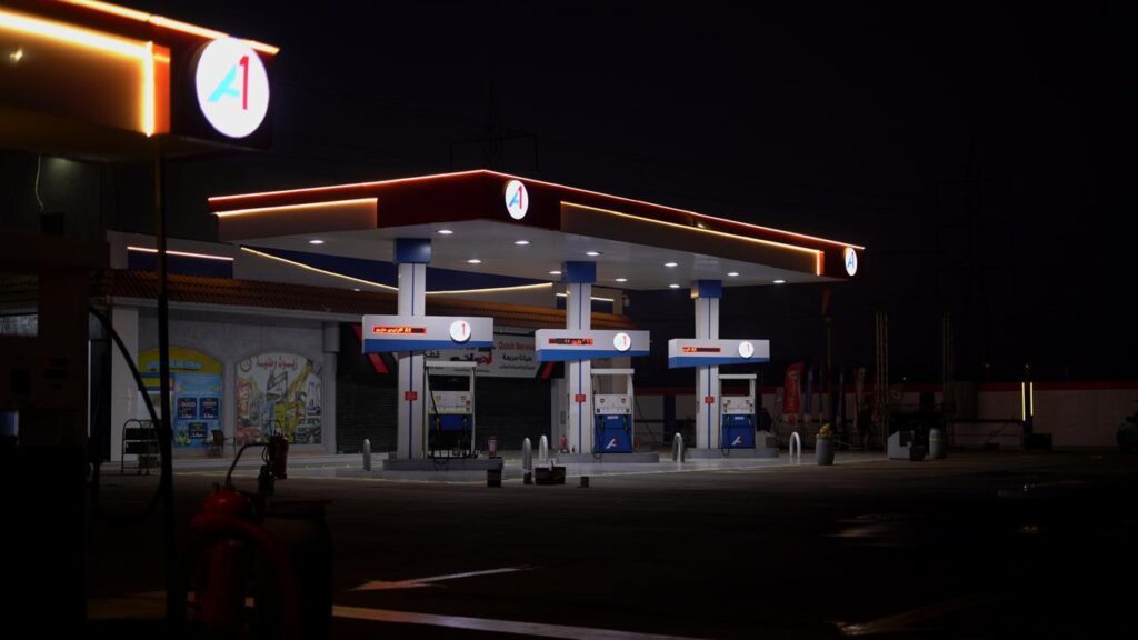 تم اعتماد تصميم حديث يعكس الطابع الديناميكي والنشاط الدائم لمحطات الوقود، مع التركيز على إبراز هوية العلامة التجارية الجديدة بألوانها وشعارها المميزين.