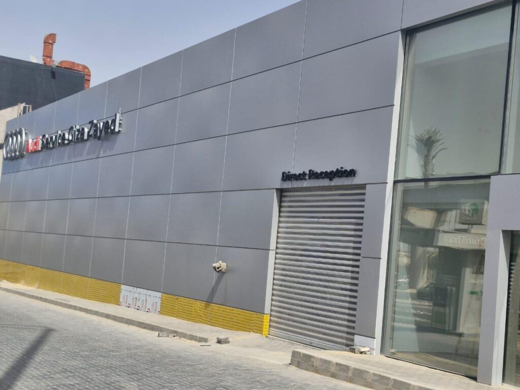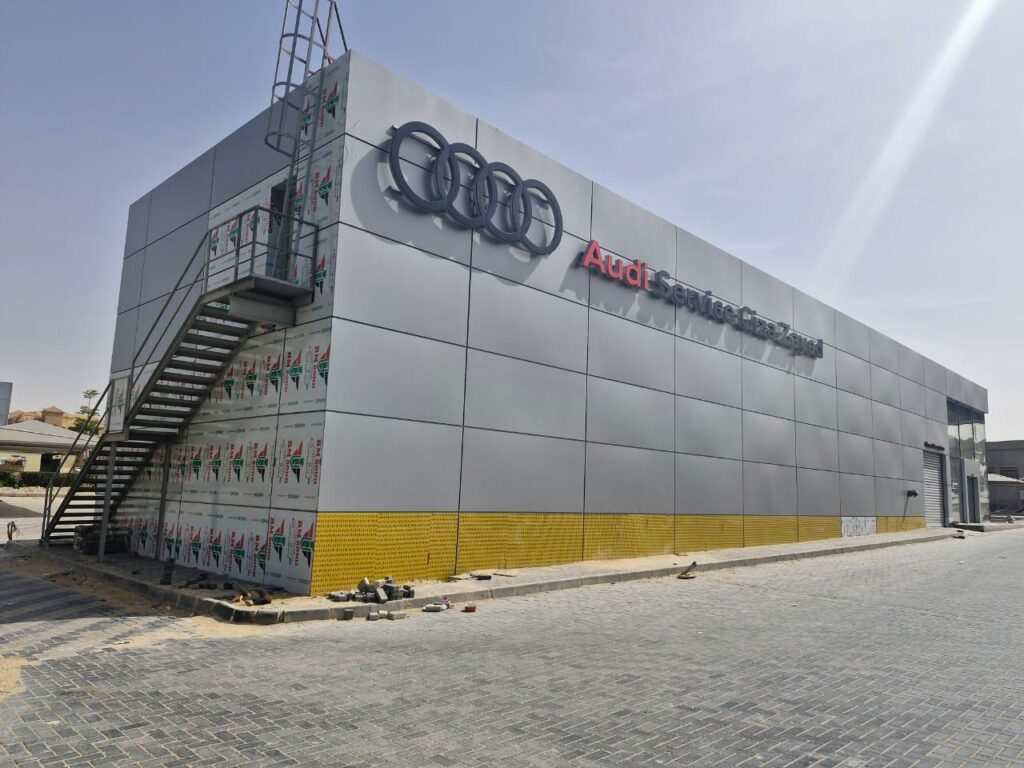 قامت شركة الشروق للمقاولات وتوريد ألواح الكلادينج بتنفيذ وتوريد أعمال الواجهات الخارجية لعدد من معارض سيارات أودي في مختلف أنحاء الجمهورية، ضمن خطة تطوير الهوية البصرية للعلامة التجارية الألمانية الشهيرة.